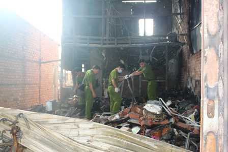Lực lượng CA đang khám nghiệm hiện trườgg vụ cháy