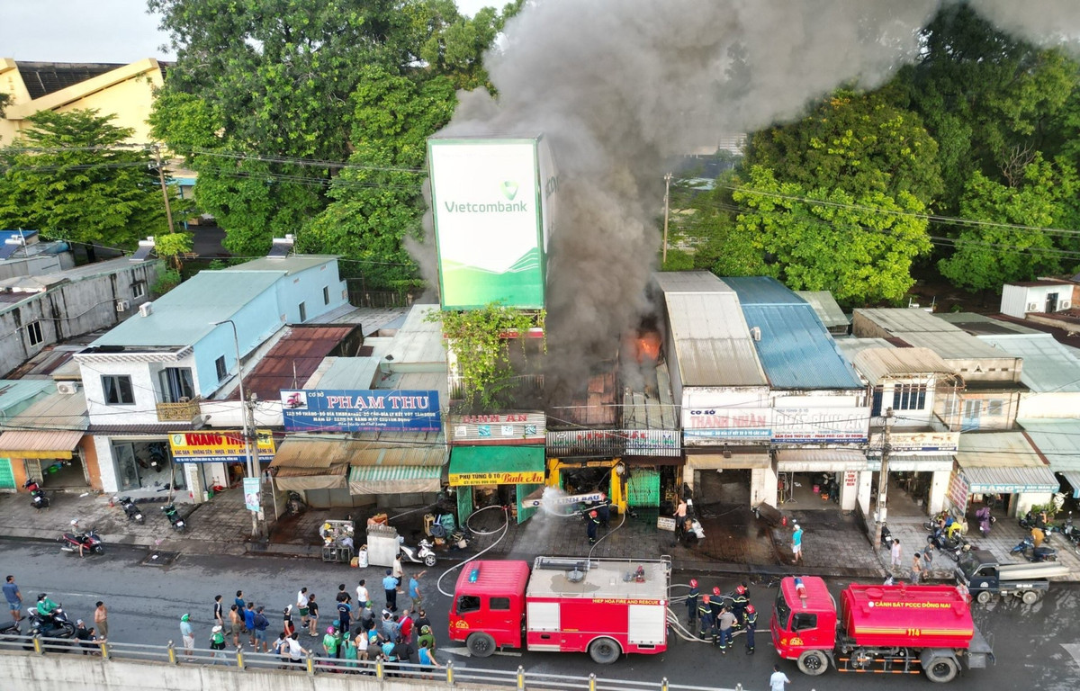 Thông tin ban đầu, khoảng 5h30 cùng ngày, khói và lửa bốc lên kèm tiếng nổ từ cửa hàng phụ tùng ô tô L.B. (phường Bình Đa, TP Biên Hòa). Sau đó, ngọn lửa bùng lên bao trùm toàn bộ cửa hàng, rồi lan sang 2 nhà bên cạnh.