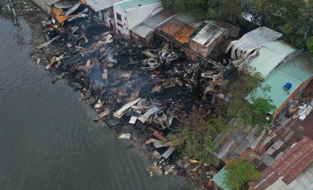 Dãy nhà ven kênh ở Quận 8, TP.HCM bị lửa thiêu rụi tan hoang.