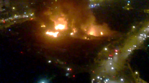 Có mặt tại hiện trường lúc 22h00 tối 18/10, phóng viên VTC News nhận thấy ngọn lửa đang lan rộng, như muốn nuốt chửng mọi thứ tại khu vực này. Hàng chục xe cứ hỏa cùng hàng trăm cán bộ, chiến sỹ đang nỗ lực khống chế đám cháy. Phía bên ngoài, người dân tập trung rất đông đúc để theo dõi việc sự việc.