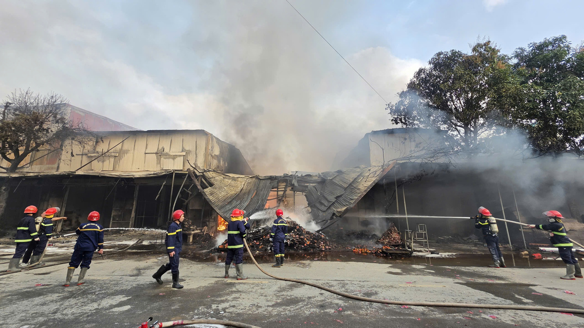 Chiều 29/1, lãnh đạo UBND phường Thuận Thành, tỉnh Bắc Ninh cho biết, khoảng 15h cùng ngày, tại khu phố Đạo Tú bùng phát đám cháy lớn. Chỉ trong thời gian ngắn, ngọn lửa lan sang 6 căn nhà liền kề, chủ yếu là các hộ sản xuất, kinh doanh hàng mã.