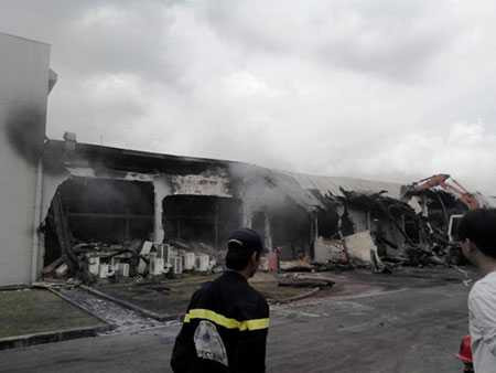 Trước đó, vụ cháy đã kéo dài suốt 10 giờ đồng hồ từ khoảng 16h ngày 18/9 đến 2h sáng hôm sau. Do nguyên vật liệu và thành phẩm trong nhà máy đều là hóa chất dễ cháy, dễ nổ nên công tác chữa cháy gặp nhiều khó khăn.