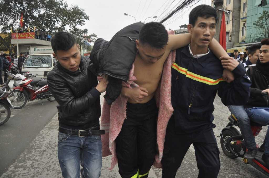Những người dân ngạt khói được đưa ra ngoài