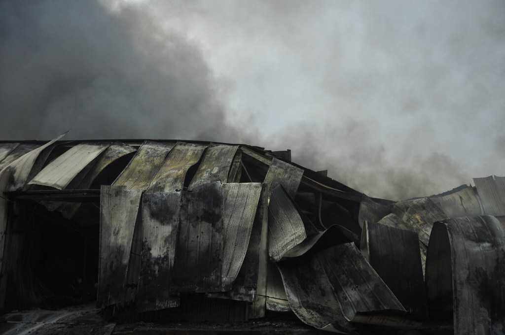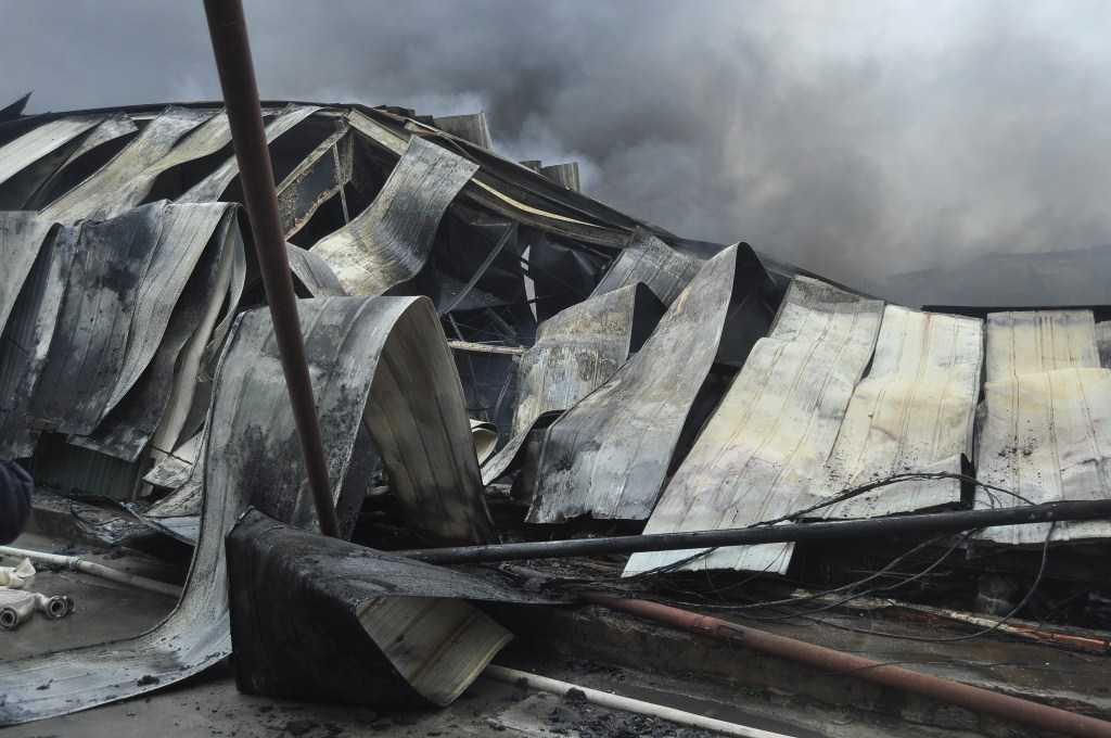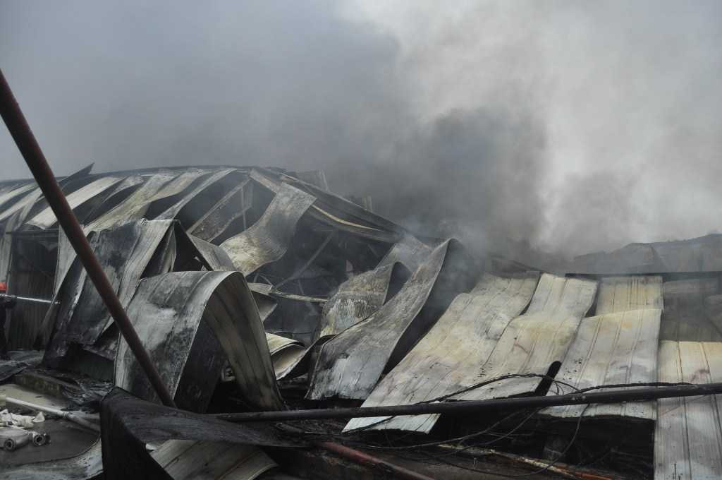 Khói bốc lên dữ dội, khu nhà kho bị đổ sập