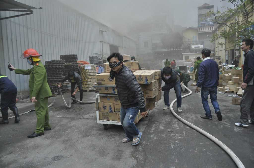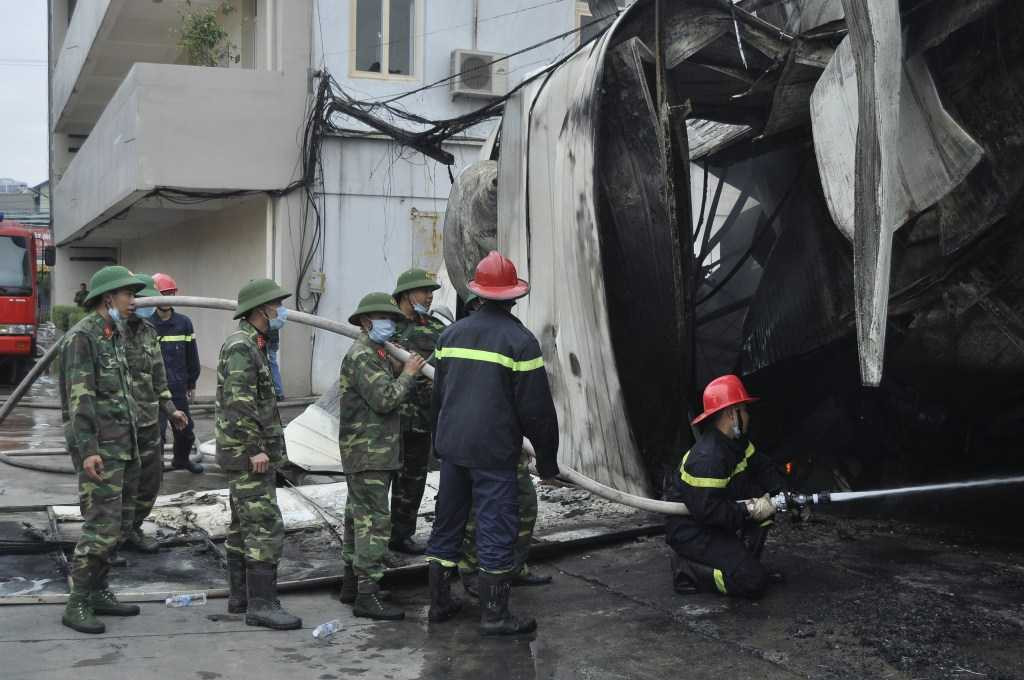 Hàng chục lượt xe cứu hỏa của cảnh sát PCCC Hà Nội cùng hàng trăm chiến sĩ PCCC khẩn trương chữa cháy. Ngoài ra, có 2 xe cứu hỏa và 350 bộ đội tham gia cứu hỏa tại hiện trường.