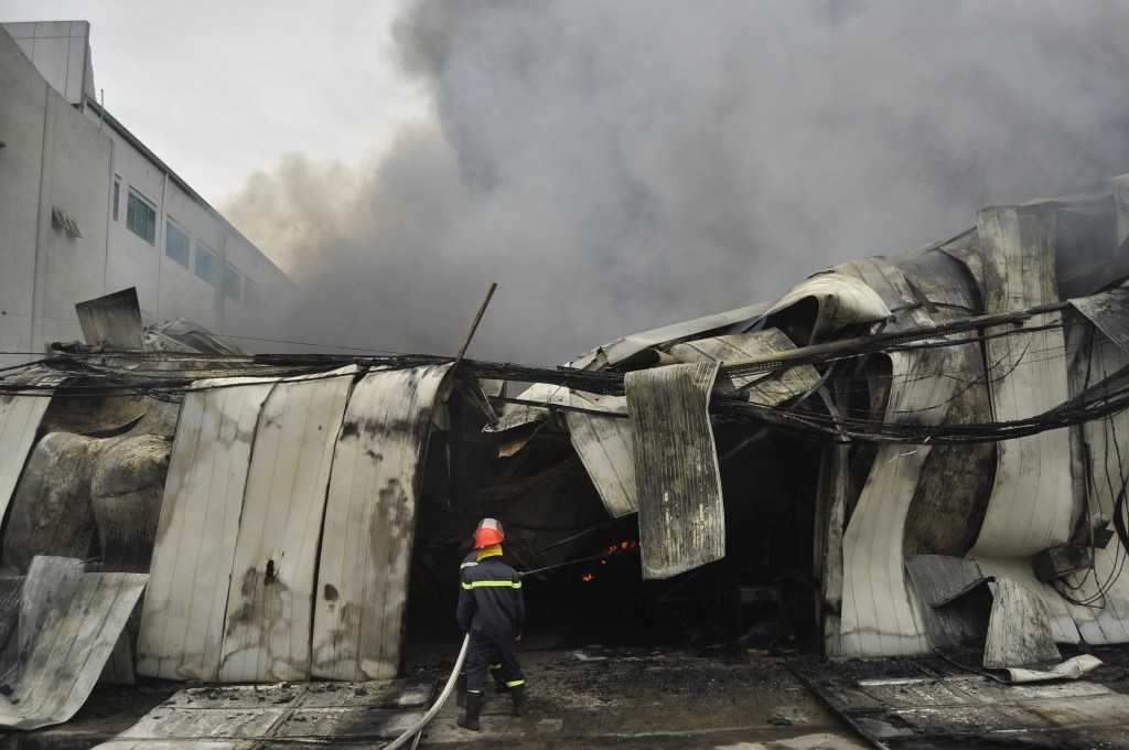 Khói bốc lên nghi ngút, khu nhà kho rộng hàng nghìn mét vuông bỗng chốc chìm trong biển lửa