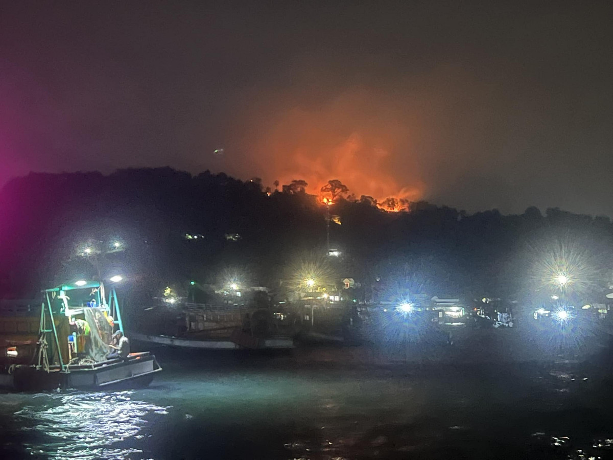Rừng phòng hộ tại xã Gành Dầu bị cháy vào đêm 11/1. (Ảnh: Người dân cung cấp)