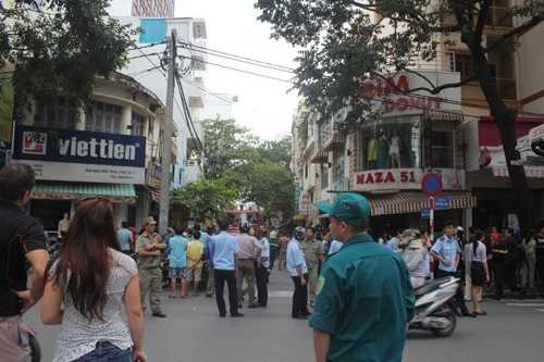 Đến 14h, ngày 8/10, cơ quan chức năng vẫn đang phong toả hiện trường vụ cháy xảy ra tại căn nhà 4 tầng kinh doanh khách sạn và tầng trệt làm cửa hàng bán cà phê, số 10, đường Nguyễn Văn Tráng, P. Bến Thành, Q.1, TP.HCM.