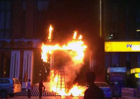 | Theo một số người dân, đám cháy xuất phát từ biển quảng cáo phía ngoài khách sạn |