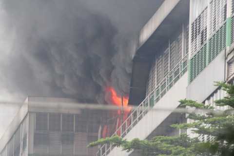 Do khu vực cháy xảy ra ở vị trí tại tầng 3, tầng 4 của khu A4, A5 nhà máy nên công tác chữa cháy gặp rất nhiều khó khăn.