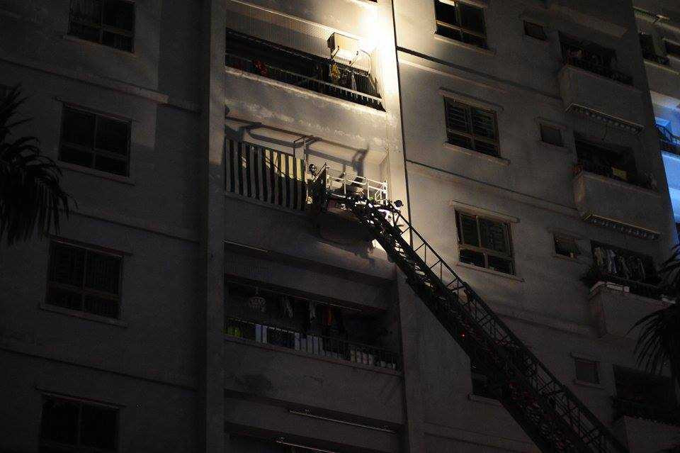 | Xe thang tiếp cận các căn hộ giải cứu người dân |
