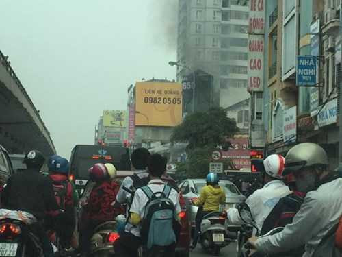 Giao thông gần khu vực xảy ra hỏa hoạn bị ùn ứ do người đi đường hiếu kỳ dừng lại để xem cháy.