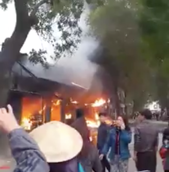 Vài phút sau, lửa đã cháy lan sang các ki ốt bên cạnh. Khu vực này có hơn 20 ki ốt kinh doanh nhiều mặt hàng khác nhau. Người dân đã nhanh chóng dùng các phương tiện chữa cháy tại chỗ để dập lửa và báo cho lực lượng PCCC.