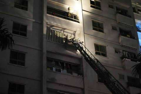 Theo chị Nguyên, khoảng 19h, chị đã thấy điện chập trờn bất thường nhưng không biết là nhà cháy. Khoảng 19h30, chị nhìn xuống dưới đường thì thấy còi xe cứu hỏa hú liên hồi. Lúc đó, chuông báo cháy tòa nhà vang lên, chị Nguyên mới hốt hoảng cùng con gái 8 tuổi và mẹ già 60 tuổi men theo cầu thang bộ thoát xuống phía sau tòa nhà.