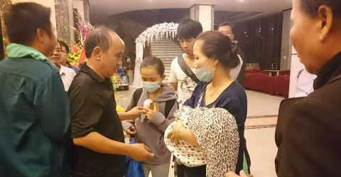 | Người phụ nữ ôm đứa trẻ nhỏ tới tạm trú tại Khách sạn Mường Thanh |