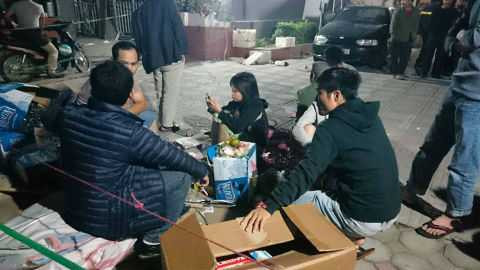 | 1h00 đêm, nhiều người dân vẫn tập trung dưới chân tòa nhà. |