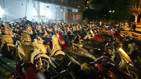 | Khá nhiều xe máy được người dân kịp thời đưa ra khỏi tầng hầm của khu nhà bốc cháy. |