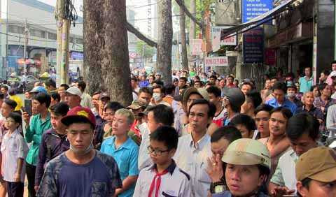 Hàng trăm người dân hiếu kỳ đứng xem chữa cháy.