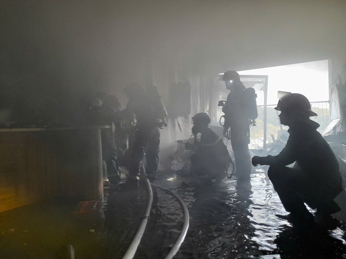 Lực lượng chức năng triển khai nhiều mũi tiếp cận, sử dụng vòi rồng phun nước từ bên ngoài vào khu vực cháy, đồng thời hướng dẫn cư dân thoát nạn qua các lối thoát hiểm.