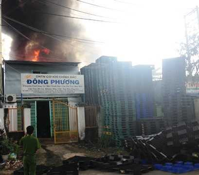 Vụ cháy xảy ra lúc 15h30 ngày 15/9 tại Công ty sản xuất Pallet nhựaTrung Tuyền, số 298, đường Linh Trung, KP.1, P.Linh Trung, Q.Thủ Đức, TP.HCM.