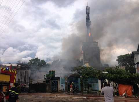 | Hiện trường vụ cháy với lửa đỏ rực và khói bốc nghi ngút |