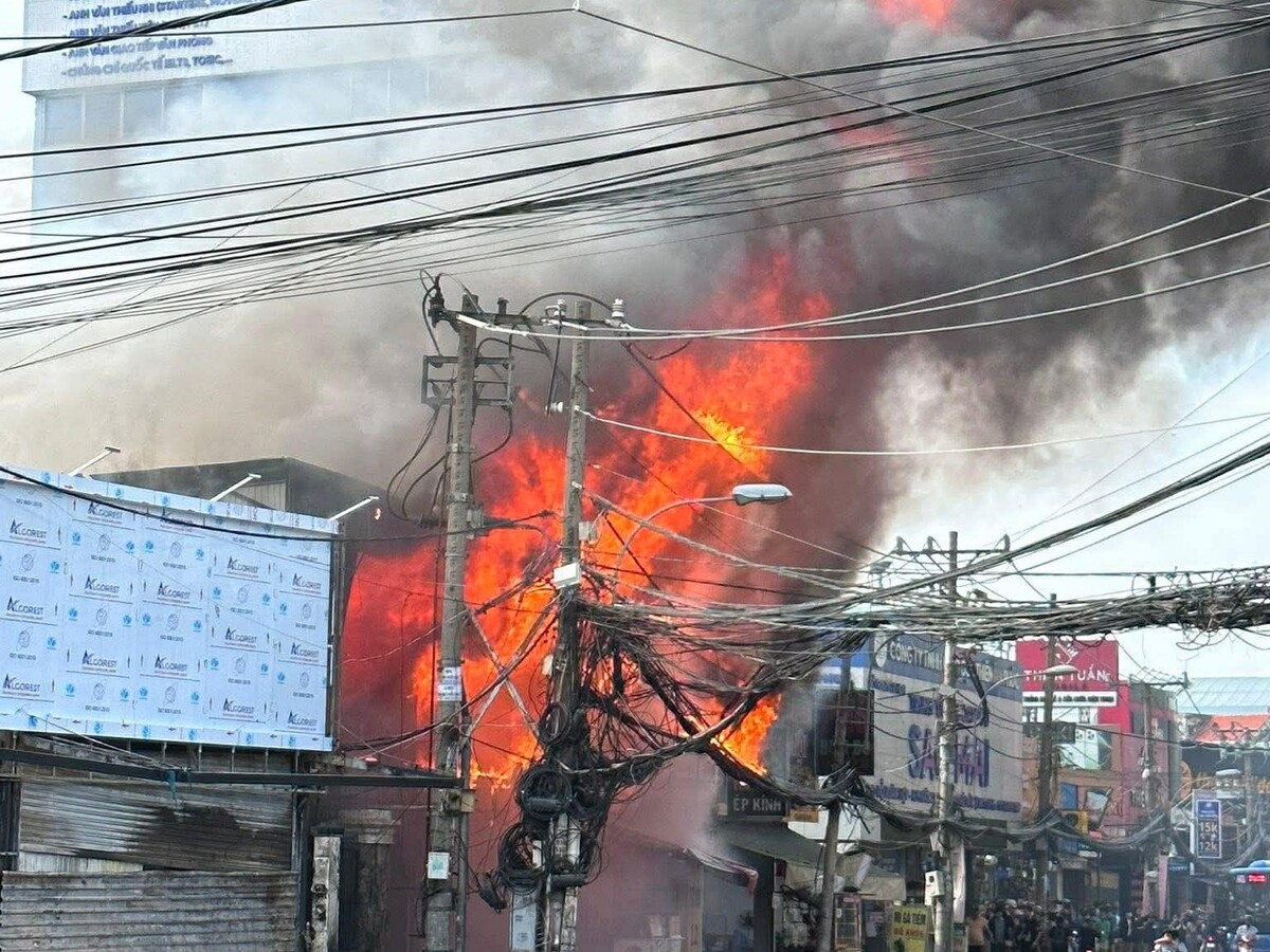 Do bên trong chứa nhiều vật liệu dễ cháy, ngọn lửa nhanh chóng lan rộng, bao trùm toàn bộ cửa hàng. Khói đen cuồn cuộn bốc cao, lửa đỏ rực khiến nhiều người dân khu vực lo lắng.