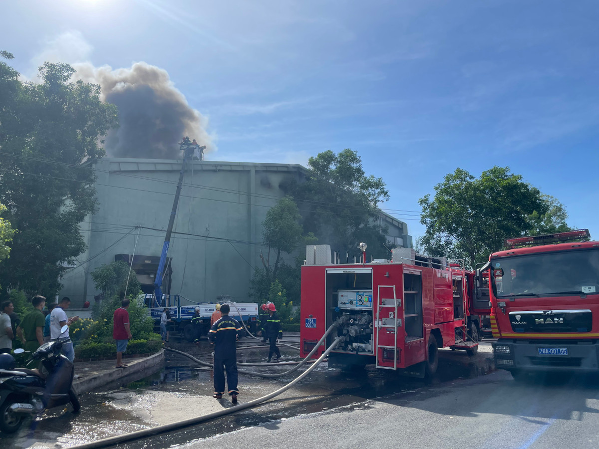 Theo đó, hỏa hoạn bùng phát tại kho lạnh của công ty thủy sản. Do có nhiều xốp bên trong kho lạnh nên ngọn lửa nhanh chóng lan rộng, cột khói ngùn ngụt bốc cao hàng chục mét.