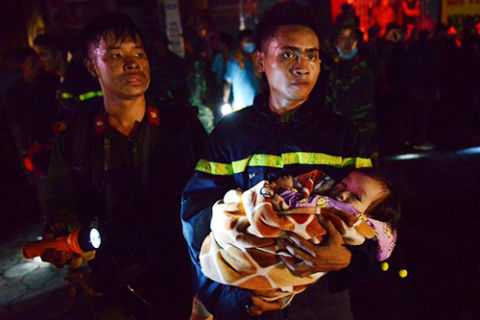 | Nhiều cháu bé đã được lực lượng cứu hộ cứu thoát. Ảnh: Zing |