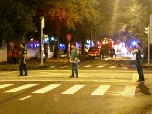 Xe cứu hỏa đậu dài tham gia dập lửa và tuyến đường ngang qua Tổng lãnh sự quán Indonesia bị phong tỏa hoàn toàn