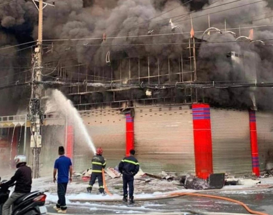 Thông tin ban đầu, khoảng 6h cùng ngày, người dân thấy lửa và khói đen bốc lên từ Cửa hàng xe máy Kim Nhật Phát (khu phố Bình Đáng, phường Bình Hòa, TP Thuận An, tỉnh Bình Dương).