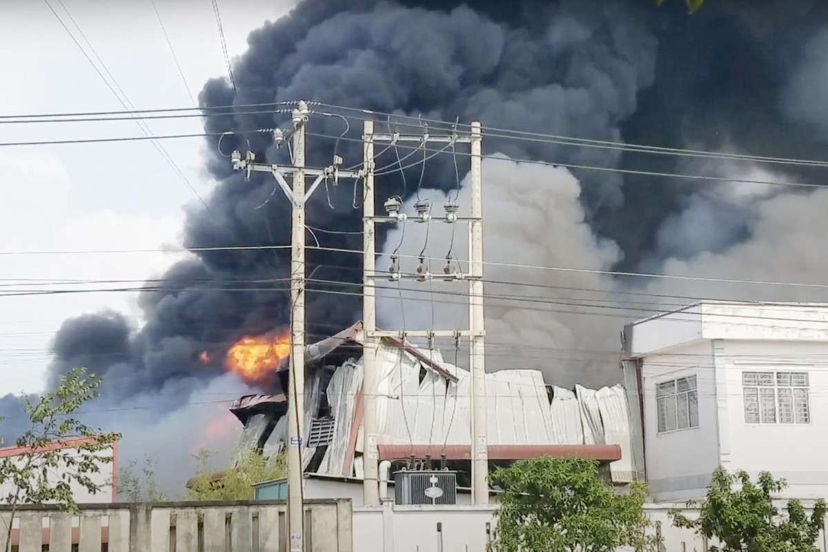 Vụ cháy xảy ra tại Khu công nghiệp Hải Sơn, huyện Đức Hòa, Long An.
