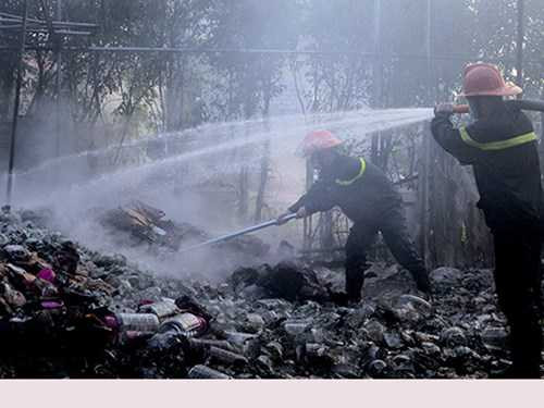 | Hiện trường nhà xưởng bị thiêu rụi |