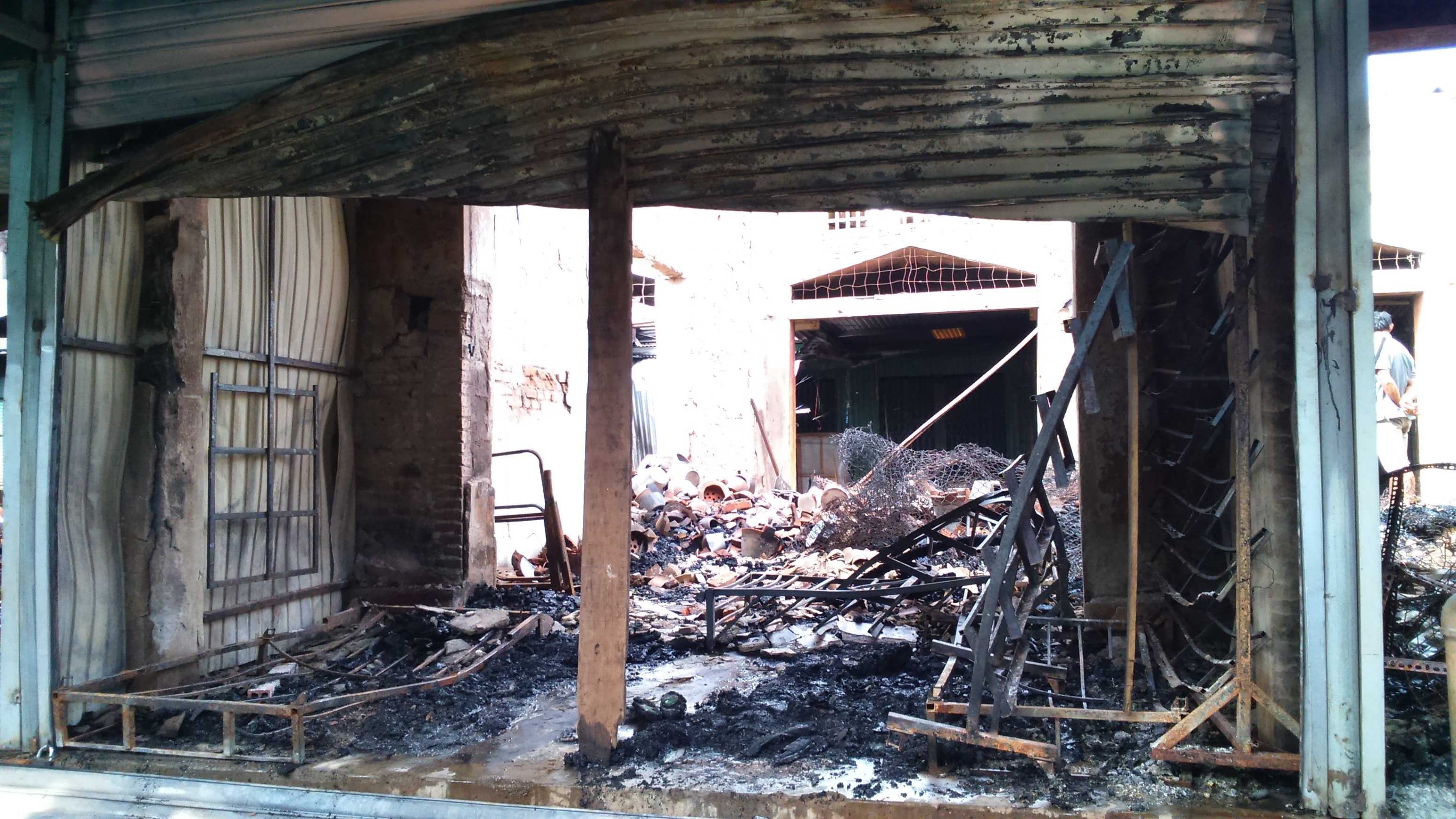 Nhìn ki ốt giày dép bị thiêu rụi anh Trương Văn Phương (48 tuổi, tiểu thương) cho biết, khi nghe thông tin cháy chợ, hai vợ chồng anh chạy ra thì ngọn lửa đã bao trùm cả khu vực. Lửa cháy lớn nên, hai vợ chồng không kịp vận chuyển đồ đạc gì ra ngoài.