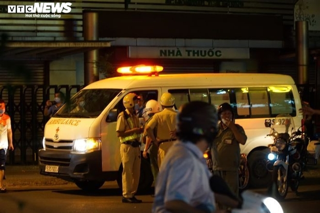Lực lượng chức năng và xe cứu thương có mặt tại hiện trường.