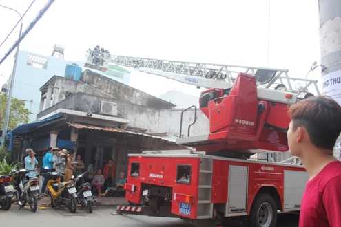 Nhận được tin báo Cảnh sát PCCC quận Tân Phú đã huy động 4 xe nước cùng 1 xe thang và hơn 30 chiến sĩ nhanh chóng có mặt tại hiện trường dập lửa.