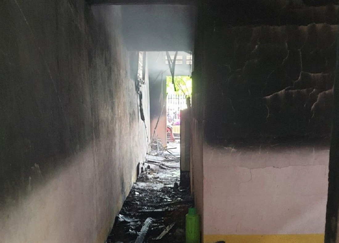 Nhà anh L. có 2 phòng ngủ và 1 phòng khách. Phòng ngủ của cháu V. bị cháy hoàn toàn và cháy lan 1 phần sang phòng khách cũng như phòng ngủ còn lại.