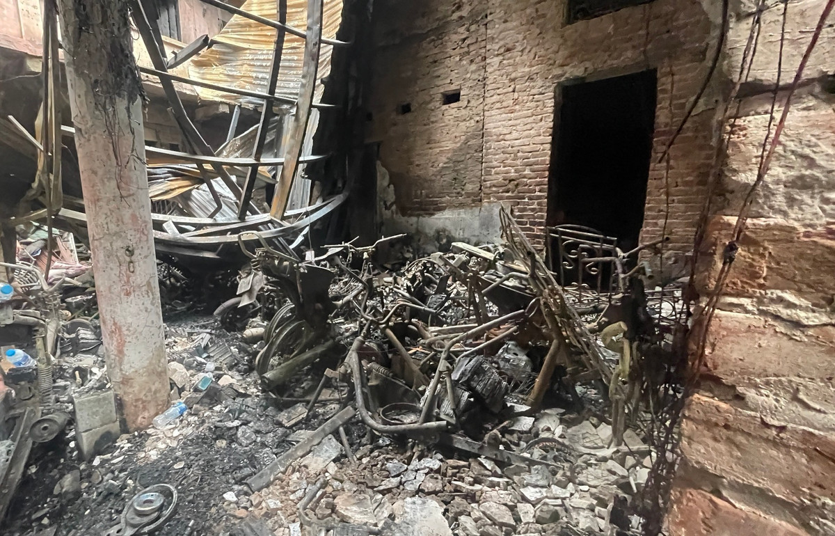 Hiện trường xảy ra hoả hoạn là nhà ở kết hợp kinh doanh và cơi nới ra để cho thuê, thậm chí tận dụng toàn bộ khoảng trống của đường vào nhà, dùng mái tôn che làm xưởng sửa chữa xe máy, xe đạp, xe điện.