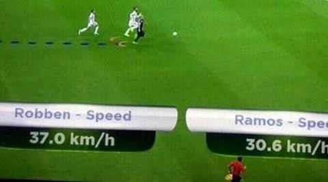 Theo số liệu của tờ De Telegraaf, khi ghi bàn thắng thứ 5 cho Hà Lan, tiền vệ 30 tuổi đã chạy với vận tốc 37 km/h (ngang với tốc độ xe máy trong đô thị ở Việt Nam) để đuổi theo đường chuyền dường như hơi quá tầm của Sneijder từ sân nhà. Với tốc độ khủng khiếp này, hậu vệ Sergio Ramos bên phía Tây Ban Nha đã hoàn toàn tụt lại phía sau Robben, dù rằng anh này cũng chẳng vừa khi guồng chân với tốc độ 30,6 km/h.