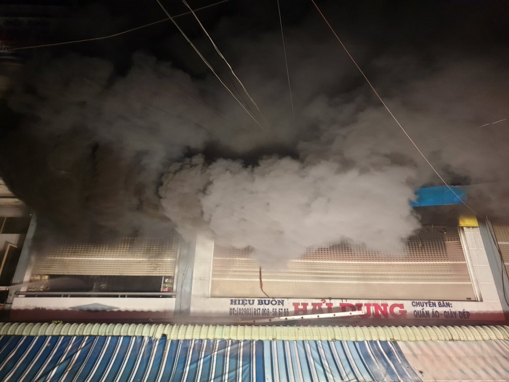 Sau đó, ngọn lửa nhanh chóng lan sang các căn nhà lân cận. Hàng trăm người trong khu chợ hô hoán, tháo chạy tán loạn. Đám cháy lớn làm xuất hiện nhiều cột khói đen cao hàng chục mét. Một cơn mưa lớn xuất hiện nhưng lửa vẫn cháy ngùn ngụt.
