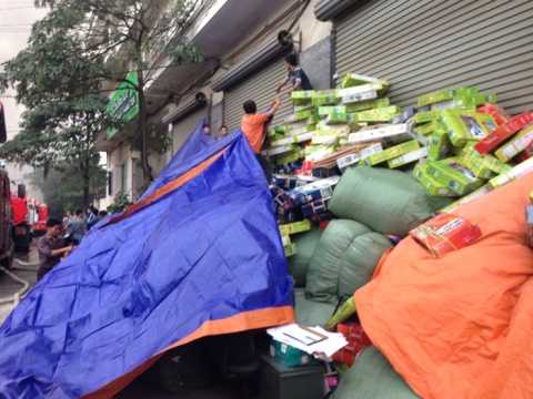 | Nhiều hàng hóa được di chuyển khỏi hiện trường vụ cháy |