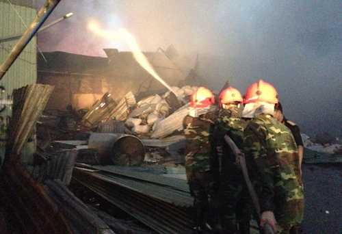 Theo ghi nhận của PV VTC News, có ít nhất 3 nhà kho đã bị đổ sập. Tường bao quanh cũng đổ sập do sức nóng của ngọn lửa. Bên trong nhà kho, ngọn lửa vẫn bùng cháy dữ dội. Thời điểm xảy ra hỏa hoạn, gió thổi mạnh khiến công tác chữa cháy gặp nhiều khó khăn.