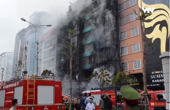 Đám cháy dữ dội bùng phát vào khoảng 2h chiều 1/11 sau đó lan ra, thiêu rụi nhiều căn nhà cao tầng trên phố Trần Thái Tông (Cầu Giấy, Hà Nội).