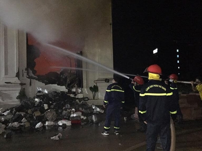 Lực lượng chức năng dập tắt đám cháy ở quán bar X5.