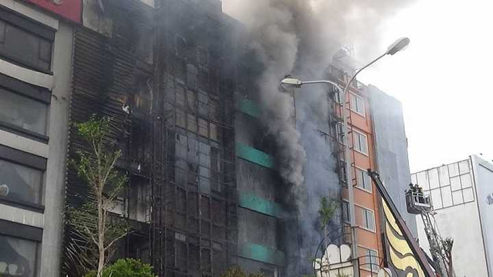 Vào lúc 14h ngày 1/11, ngọn lửa bùng phát tại chuỗi cơ sở kinh doanh ăn uống và karaoke trên phố Trần Thái Tông khiến nhiều người có mặt trong nhà hàng tháo chạy tán loạn.