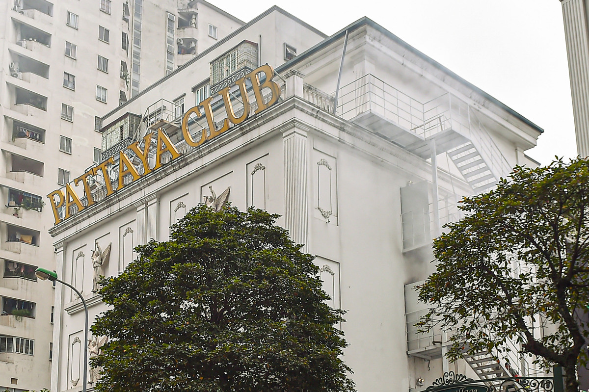 Khói bốc lên từ tầng 3 của quán Pattaya Club. (Ảnh: Đình Long)
