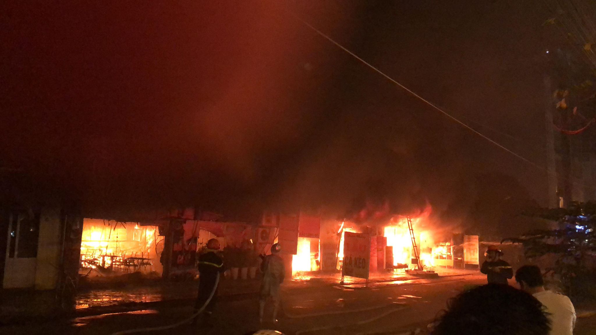 Ngọn lửa cuồn cuộn thiêu rụi cả dãy hàng quán.