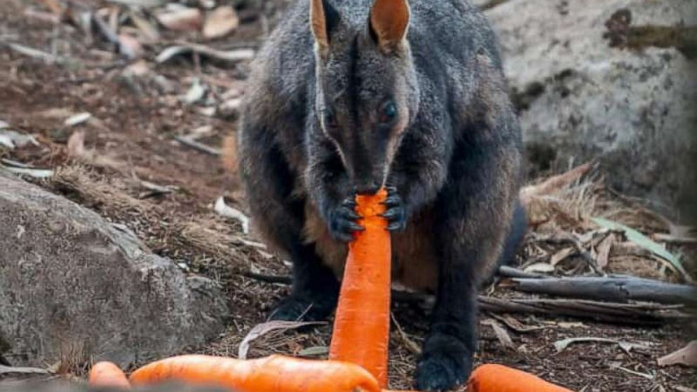 Chính quyền bang New South Wales sử dụng máy bay thả hơn 4.000 pound (1.814 kg) thực phẩm, chủ yếu là cà rốt và khoai lang, cho các con vật mất chỗ ở phải lang thang trong đám cháy lớn tàn phá môi trường sống của chúng.