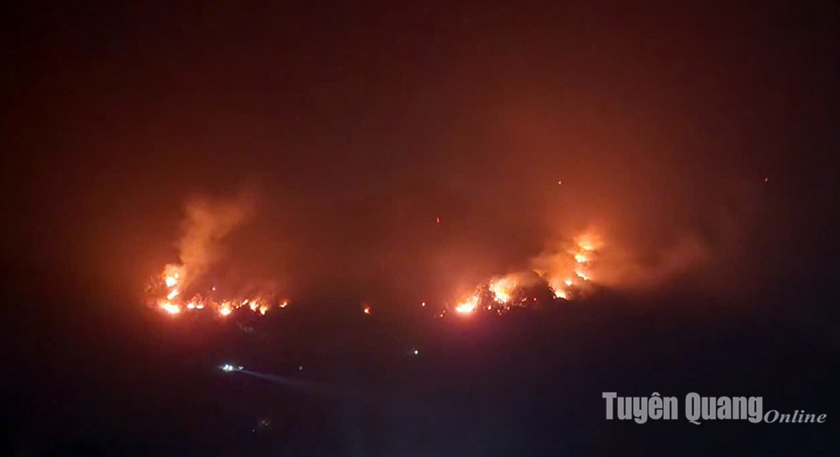 Thông tin từ UBND huyện Yên Sơn và Kiểm lâm tỉnh, đến 23h15, lực lượng chức năng mở rộng đường băng cản lửa lên trên 5m, có chiều dài 250 m.