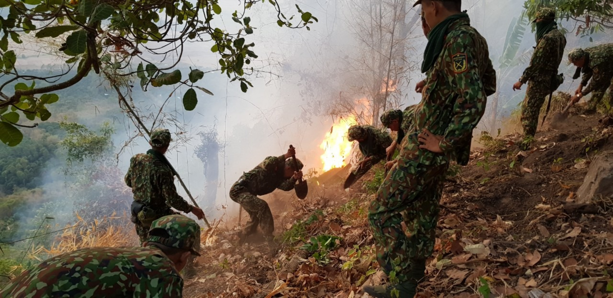 Ngọn lửa bùng phát tại tiểu khu 10 vào khoảng 9h ngày 3/3 và nhanh chóng lan rộng. Gần 600 kiểm lâm, bộ bội, công an và dân địa phương được huy động chữa cháy. Do hỏa hoạn xảy ra lúc trời nắng, thảm thực bì dày nên việc dập lửa gặp nhiều khó khăn.