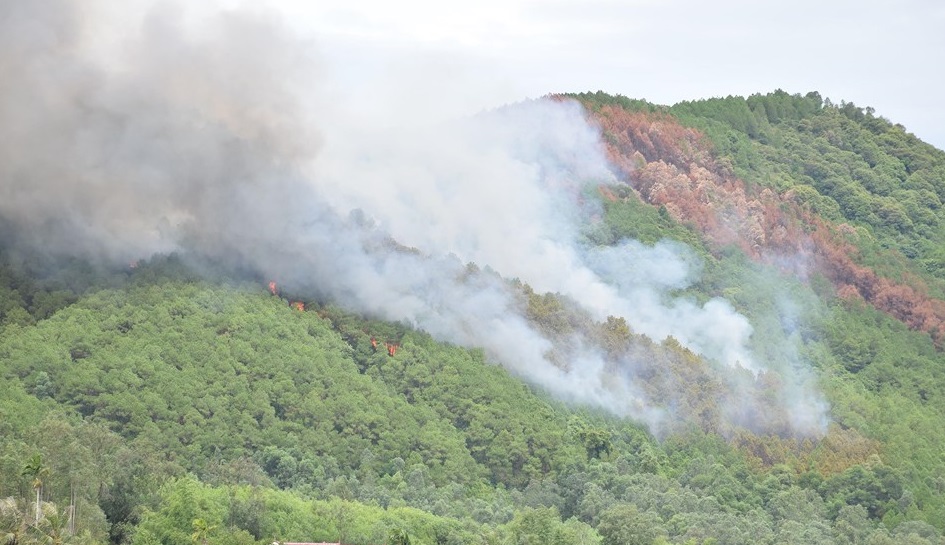 Sau khi phát hiện cháy rừng, chính quyền địa phương huy động hơn 200 người lên núi dập lửa. Tuy nhiên, do thảm thực bì dày, trời khô nóng nên lửa nhanh chóng lan rộng khiến công tác chữa cháy rừng gặp nhiều khó khăn.